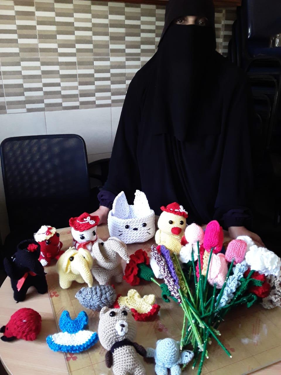رفعت الستينية تمام من المستوى المالي لها وأسرتها المكونة من 6 أفراد، التي تقطن في منطقة الهاشمي عبر مشروعها الذي هو عبارة عن عمل قطع كروشيه يدوية.